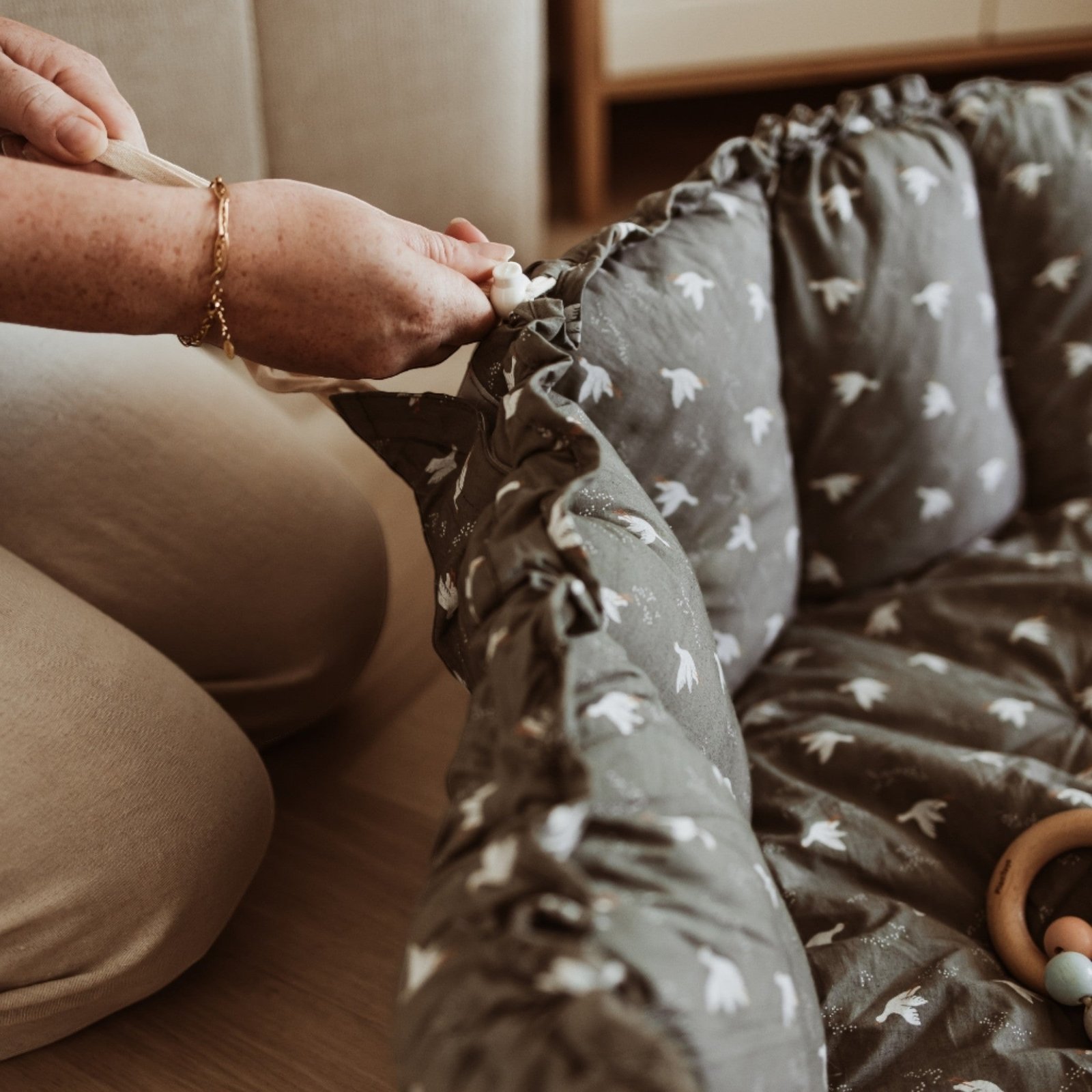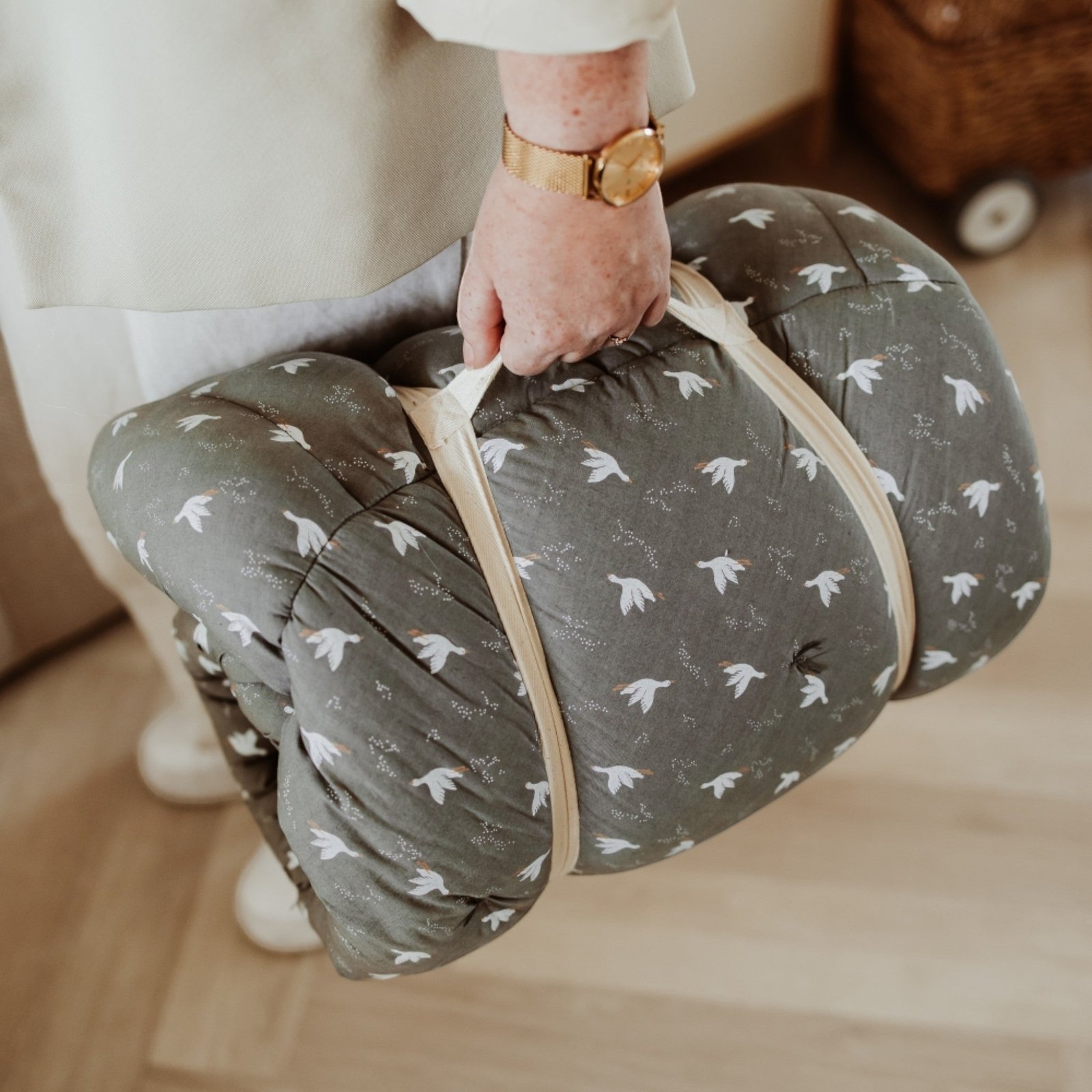 The nest is lightweight and easy to carry thanks to its separate carrying straps, providing a familiar environment for your little one wherever you are! Made from organic cotton.