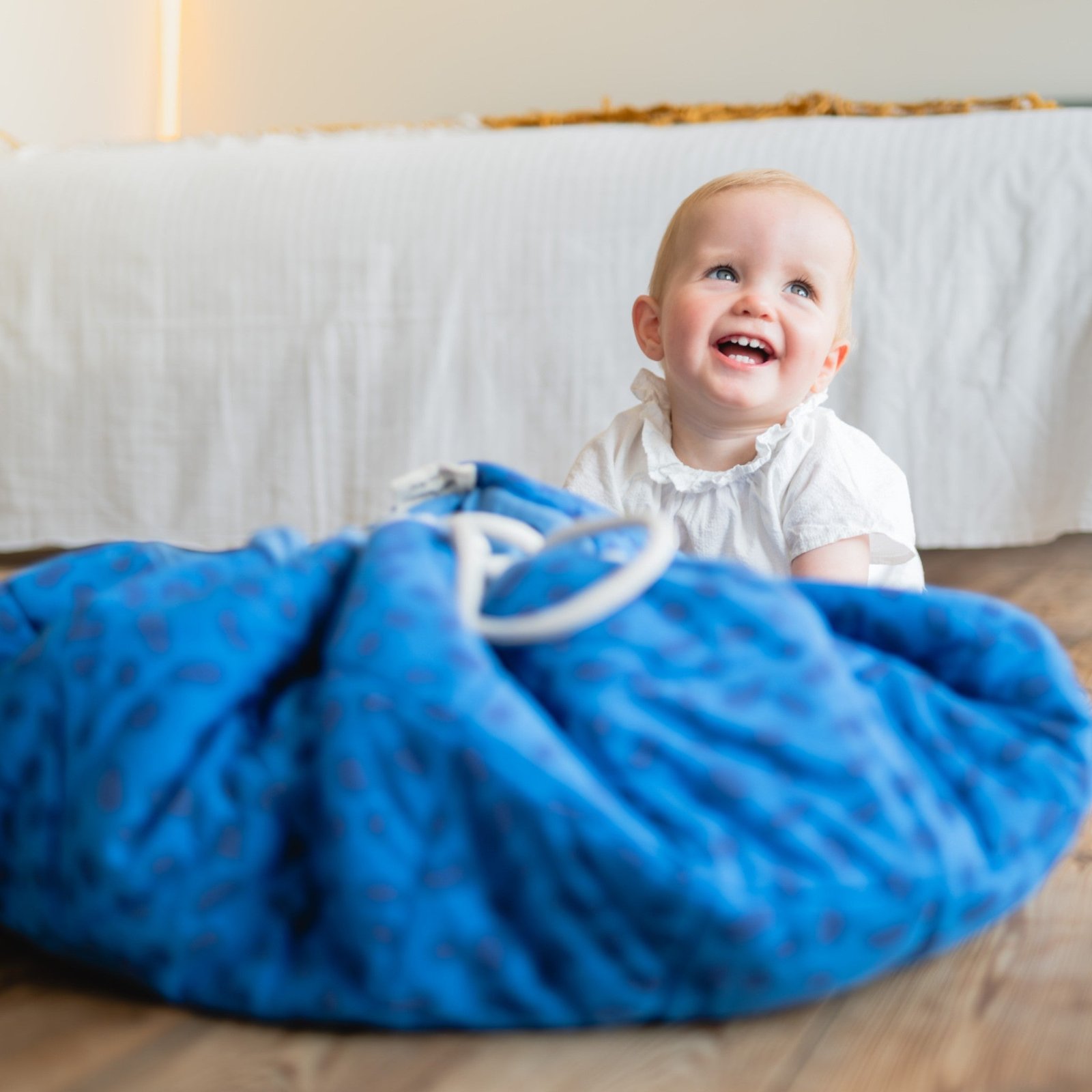 Welcome to the magical world of Puce & Pilou with this unique soft play mat, designed in bright blue shades that capture the adventures of the two best friends. An essential accessory that offers your baby a safe, comfortable, and cozy space for play, rest, and development.