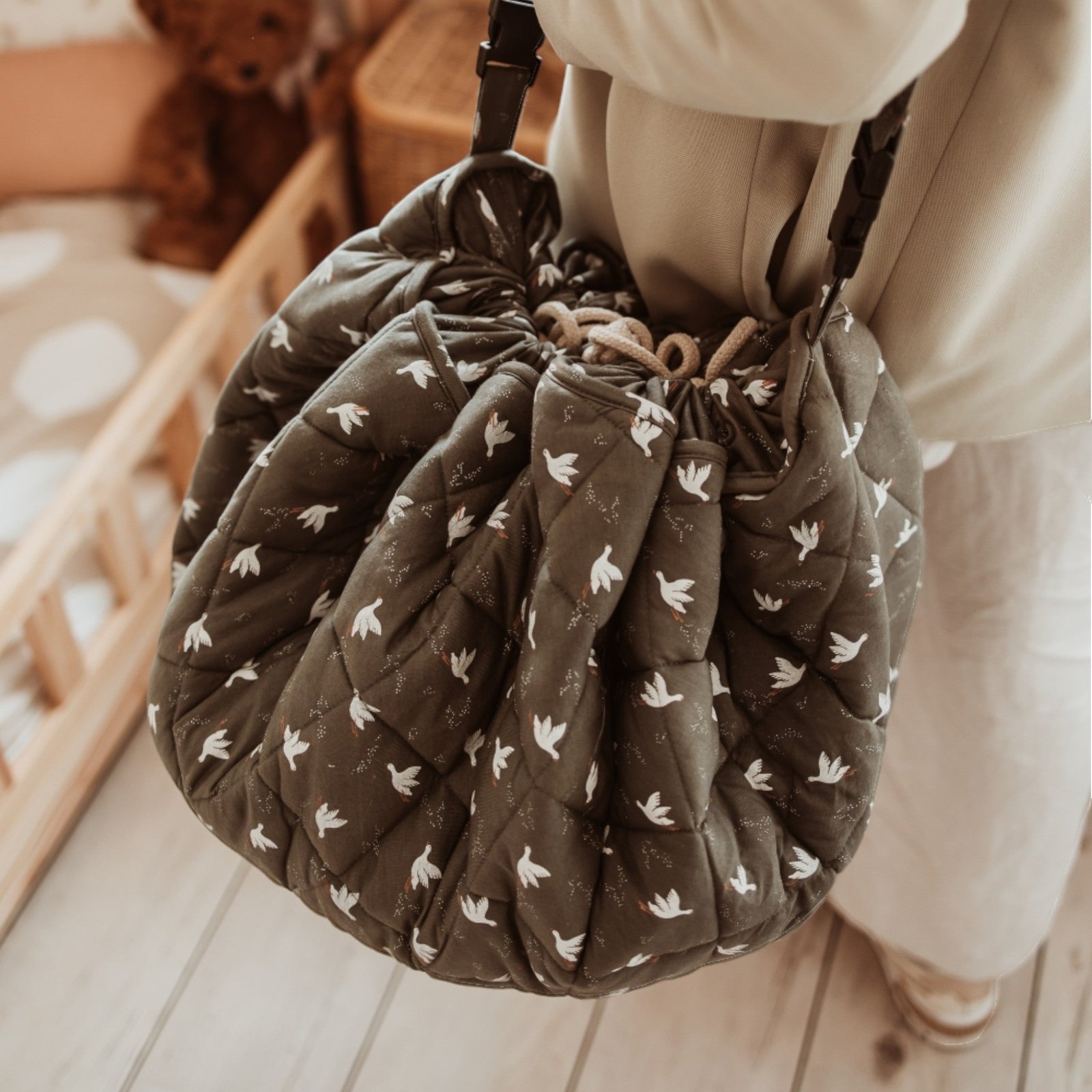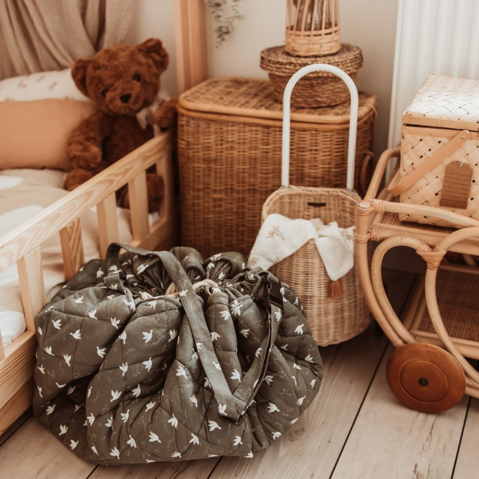 Discover the multifunctional 3-in-1 baby play mat, storage bag, and diaper bag!