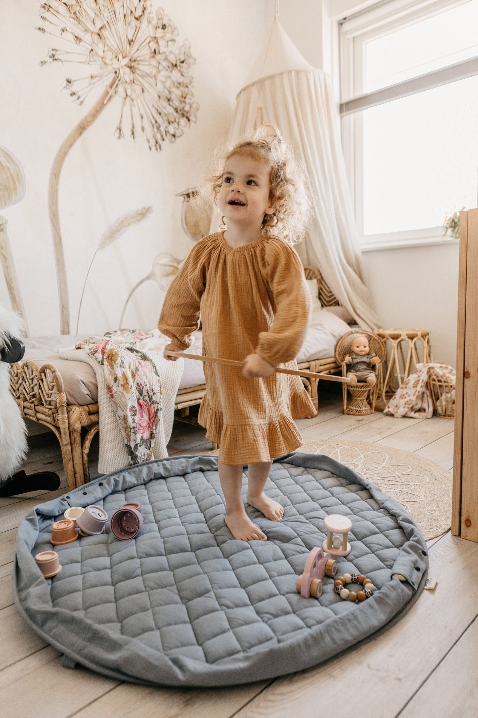 A unique play mat for playtime that is also a toy storage bag as well as a diaper bag. It is made from GOTS organic cotton to offer your baby maximum enjoyment and comfort. Its portable, durable design makes it ideal for travel, outings, vacations, and visits to friends and family.