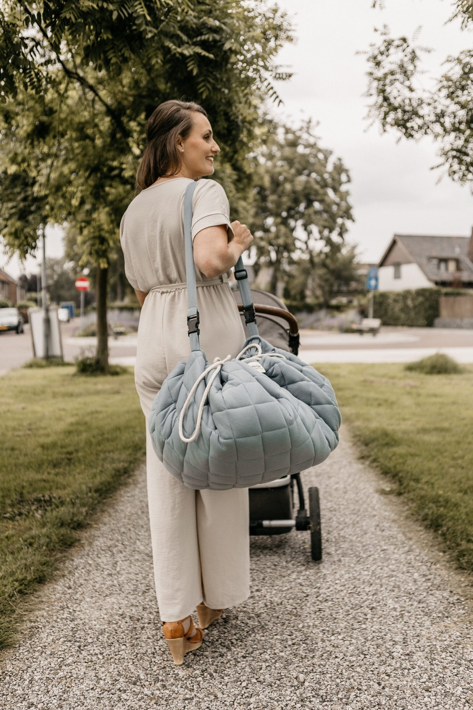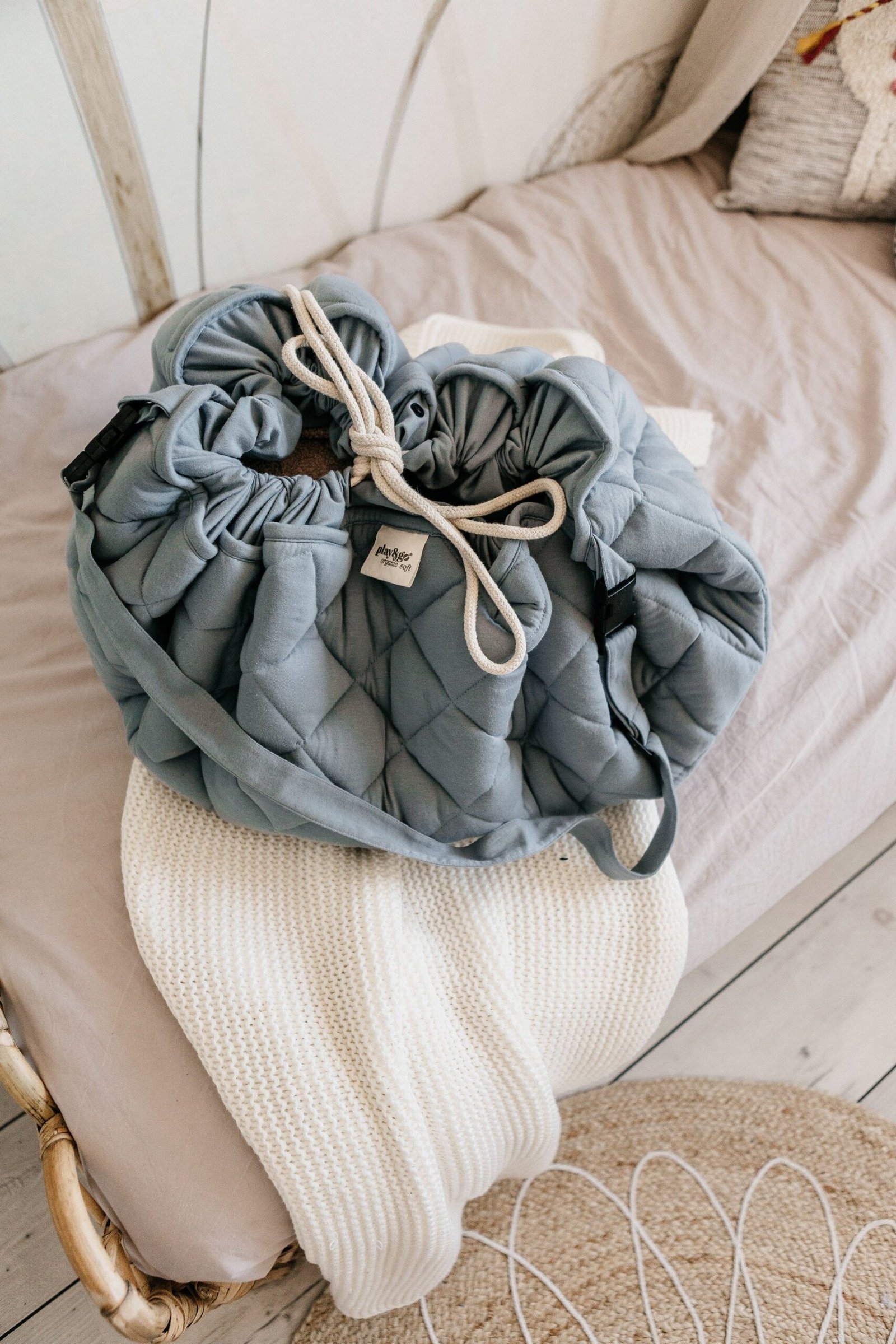 Discover this organic, functional mat—3-in-1 play mat, storage bag, and diaper bag!